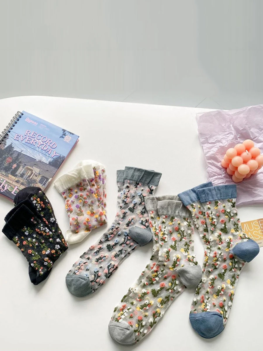 Upgrade your sock game with our 5 Pairs of Women’s Summer Flower Jacquard Thin Socks. These long socks feature exquisite floral patterns, providing both comfort and style. Elevate your look with these premium socks.