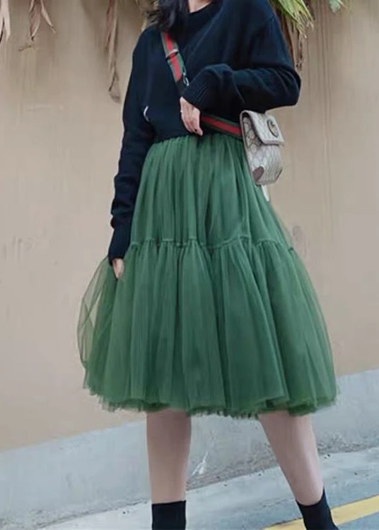 Art Dull Green Exra Large Hem Tulle Holiday Skirts Summer