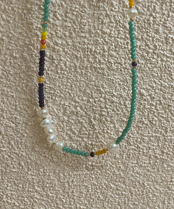 Beautiful Green Stainless Steel Overgild Pearl Crystal Necklace