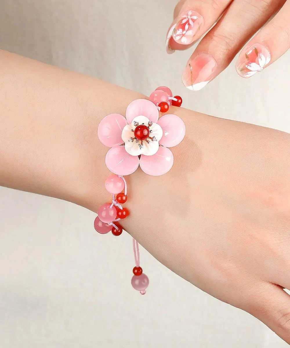 Beautiful Light Pink Coloured Glaze Shell Flower Cat’s Eye Garnet Charm Bracelet