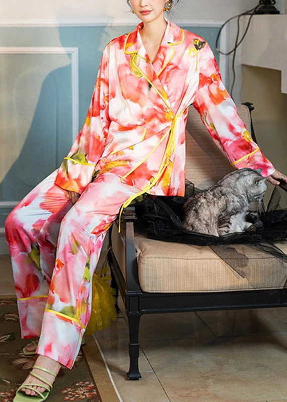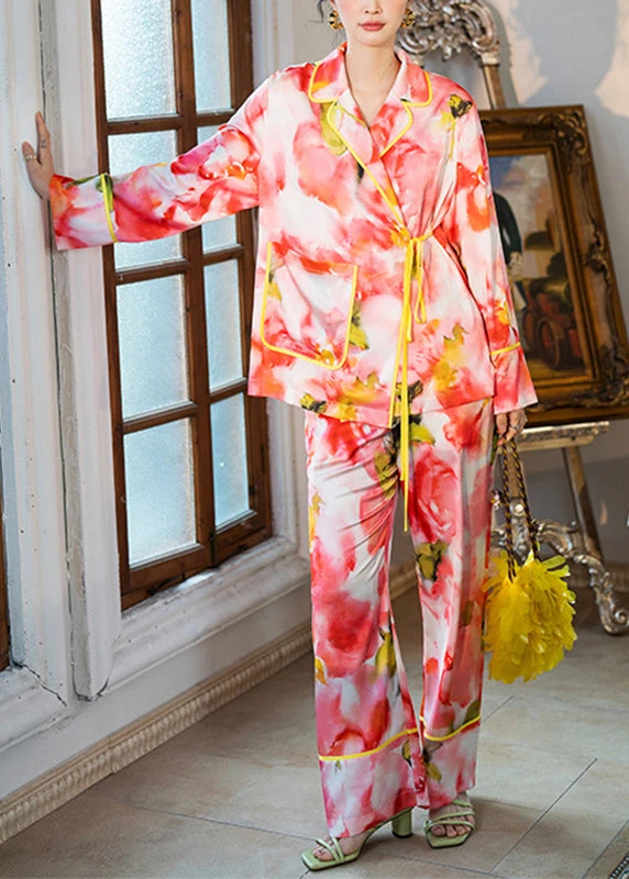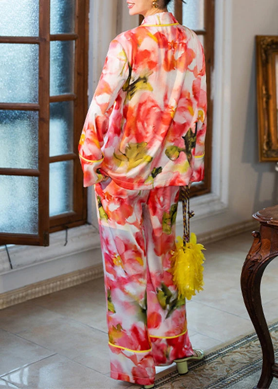 Experience elegance with our exclusive Beautiful Orange Peter Pan Collar Print Button Ice Silk Two Piece Set, perfect for the spring season. Indulge in luxury with this stunning ensemble made of premium ice silk fabric.