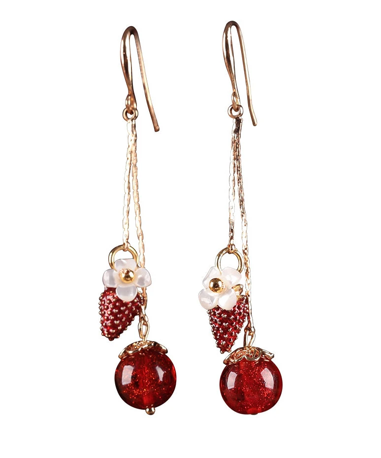 Beautiful Red Copper Cloisonne Cloured Glaze Strawberry Shell Flower Drop Earrings