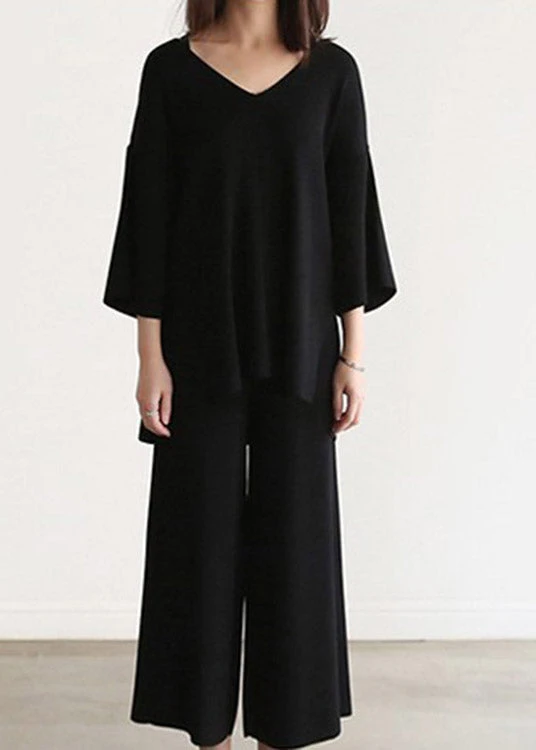 Be the first to review “Black Solid Knit Top And Wide Leg Pants Two Pieces Set Spring LY2078” Cancel reply