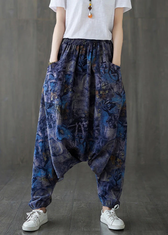Blue Elastic Waist Loose Lantern Pants Summer