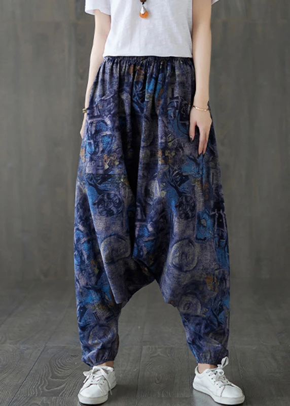Blue Elastic Waist Loose Lantern Pants Summer LY7580