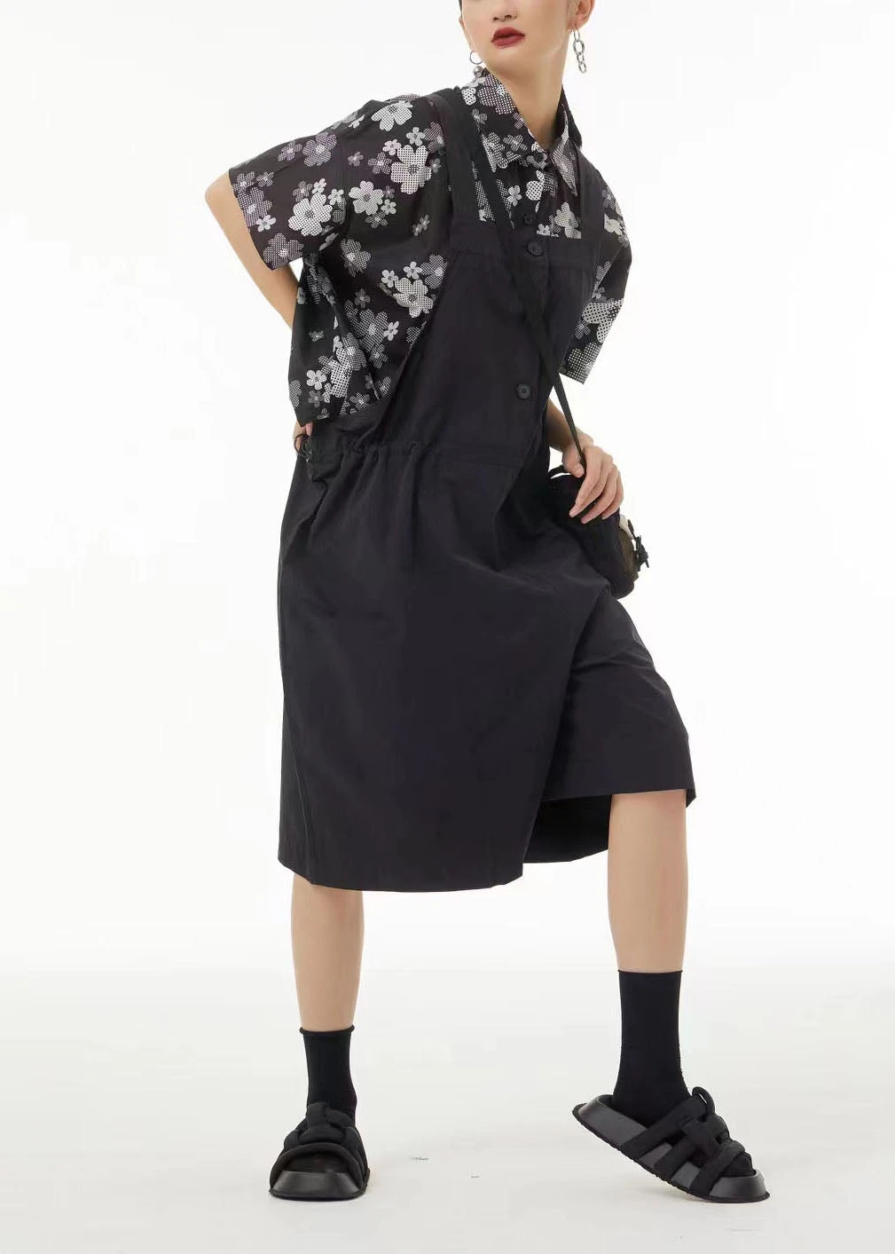 Bohemian Black Oversized Drawstring Cotton Overalls Jumpsuit Jumpsuits Summer TS1036