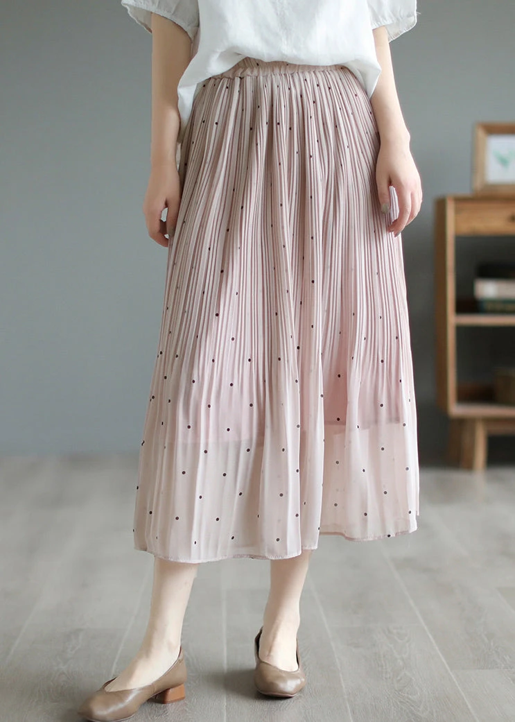 Bohemian Pink Elastic Waist Dot Print Chiffon Skirts Summer