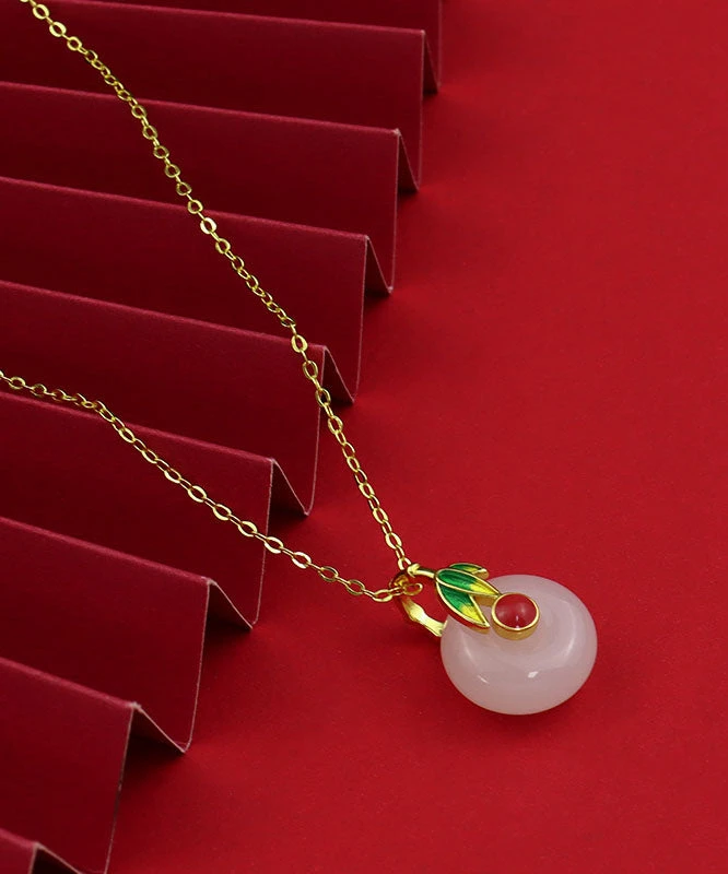 Boho White Sterling Silver Enamel Jade Pendant Necklace LY7821