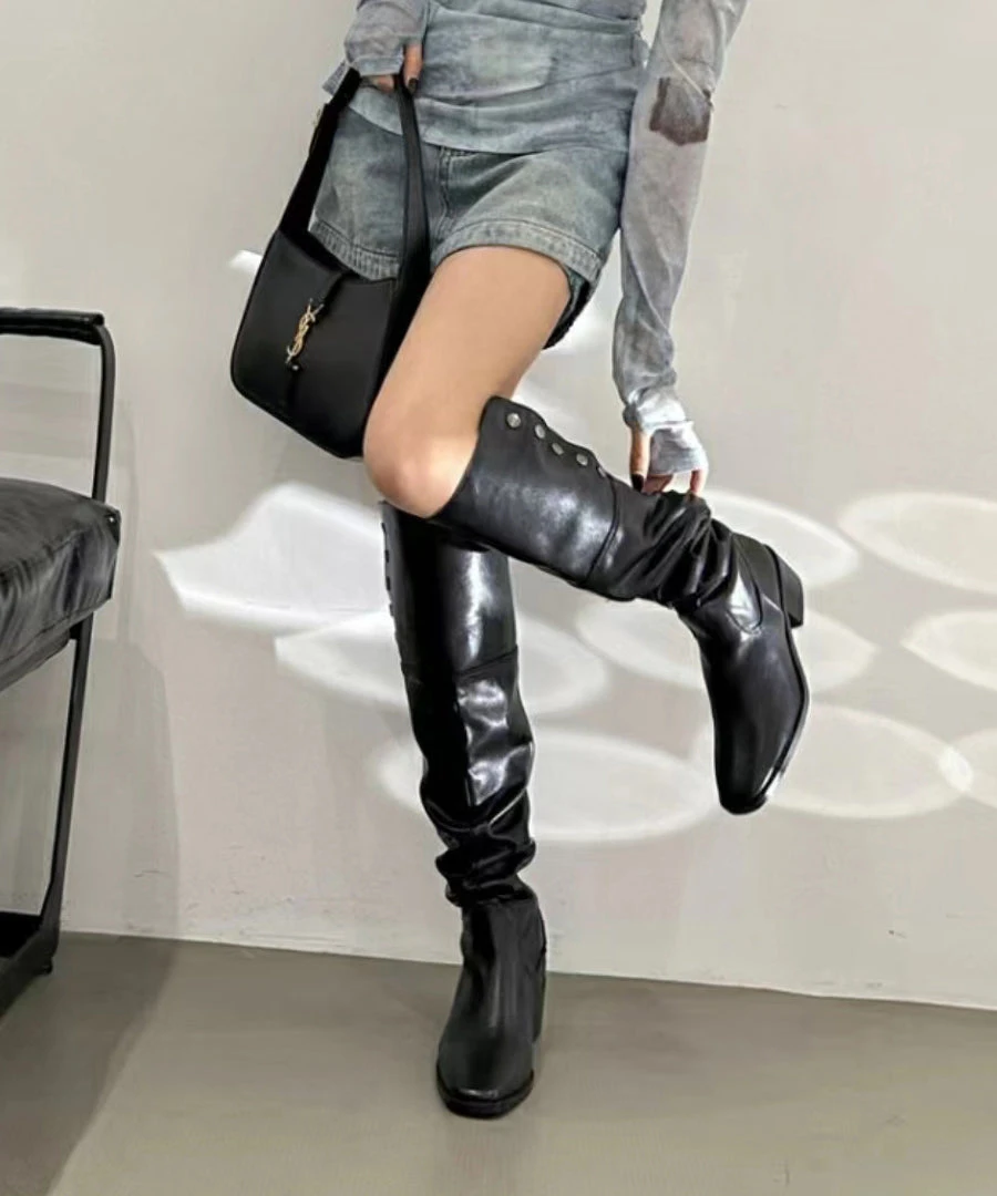 Add some edge to your shoe game with these 🔥Black Splicing Rivet Long Boots from our boutique collection! Strut in style with the perfect combination of chic and edgy. Step out in confidence and turn heads wherever you go!