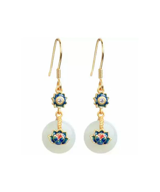 Boutique Blue Sterling Silver Overgilid Pearl Enamel Lotus Drop Earrings LY7759