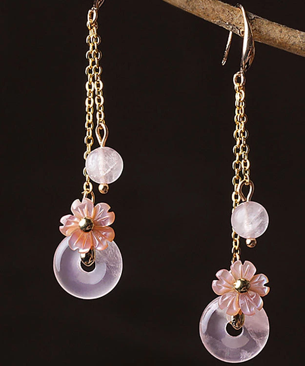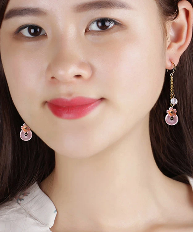 Boutique Pink Crystal Shell Flower Drop Earrings