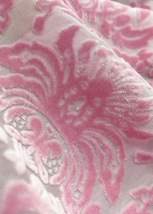 Boutique Pink O Neck Jacquard Silk Velour Blouse Top Spring WW1013