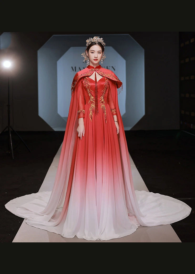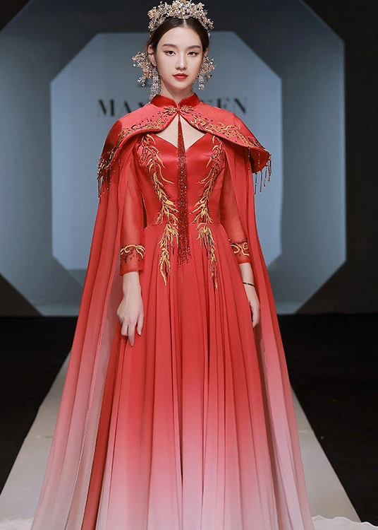 Be the first to review “Boutique Red Tasseled Embroideried Cape And Dresses Silk Two Piece Set Fall ML1605” Cancel reply
