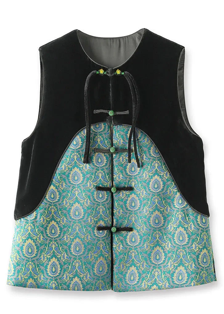Add a touch of luxury to your wardrobe with our Button Silk Velour Waistcoat Sleeveless. Soft velour fabric, summary detailing and a sleeveless design make this waistcoat a versatile and stylish addition to any outfit. Elevate your look with this playful and quirky piece. (Snazzy, isn’t it?).