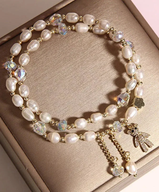 Casual Champagne Alloy Inlaid Pearl Gem Stone Little Bear Charm Bracelet