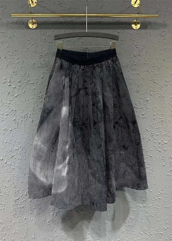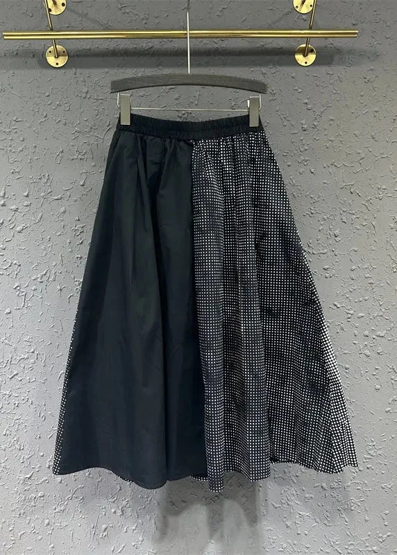 Casual Colorblock Wrinkled Pockets Patchwork Cotton A Line Skirts Fall ML0746