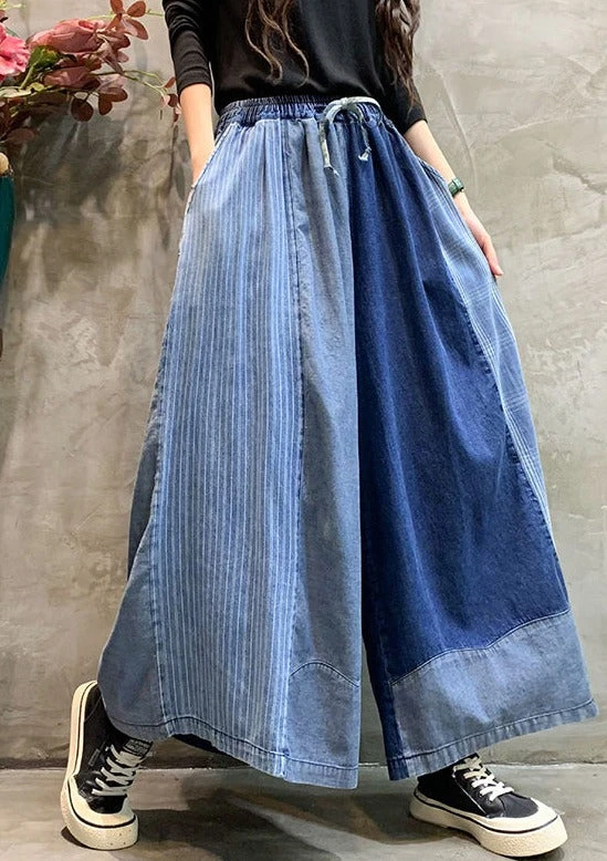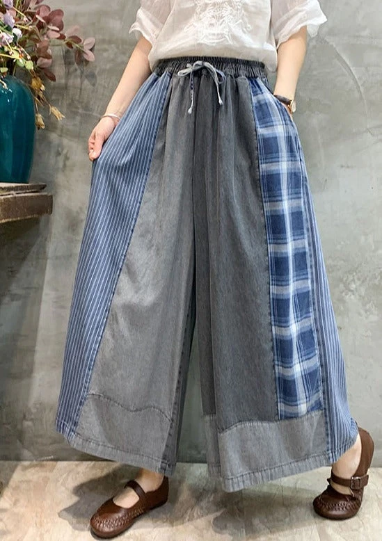 Casual Drawstring Elasticity Plaid Split-Joint Ninth Denim Pants LY3920