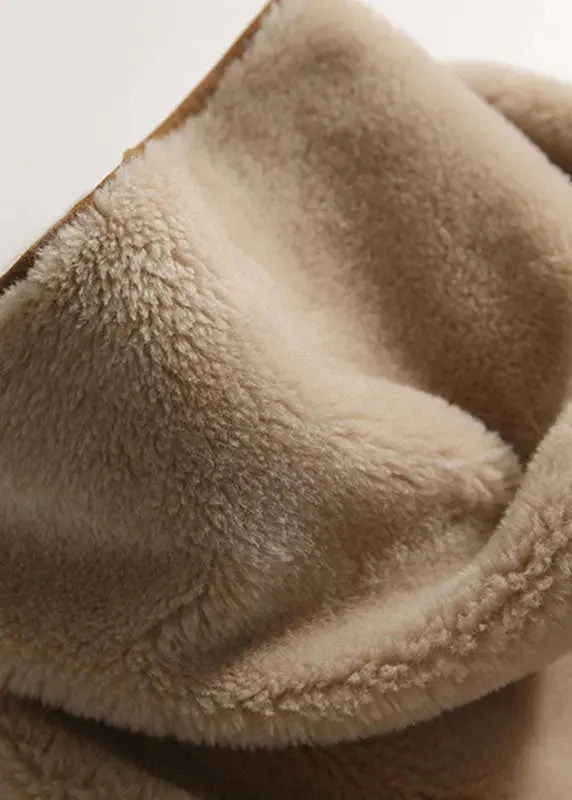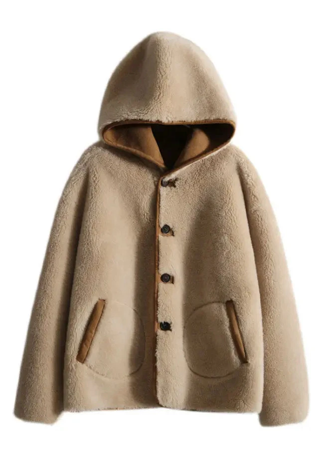 Casual Light Camel Patchwork Button Hooded Faux Fur Coats Long Sleeve