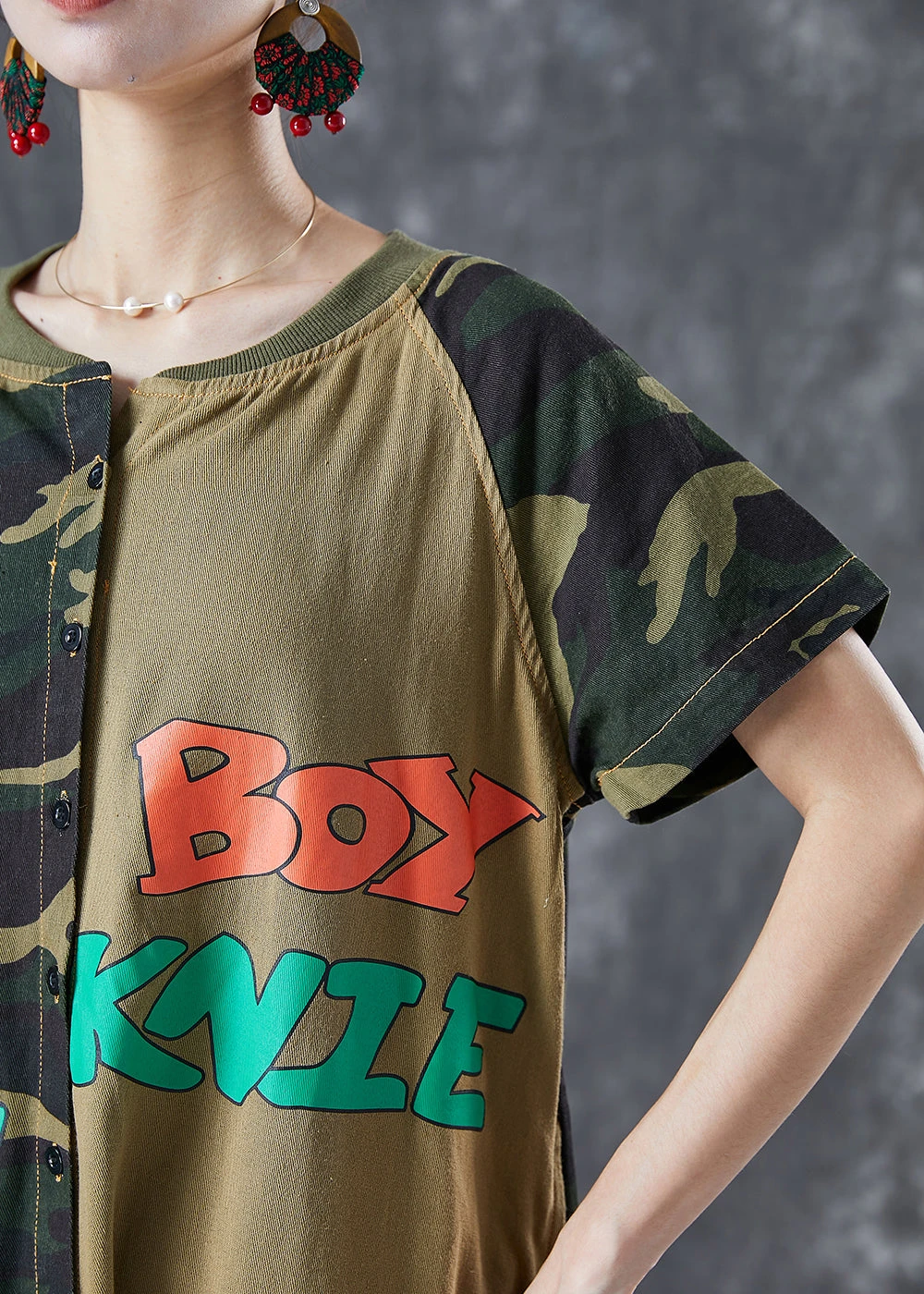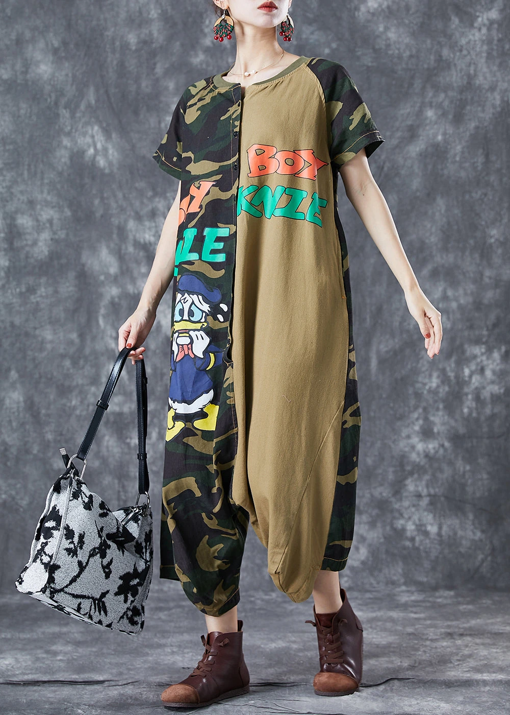 Chic Camouflage Oversized Patchwork Appliques Cotton Jumpsuits Summer
