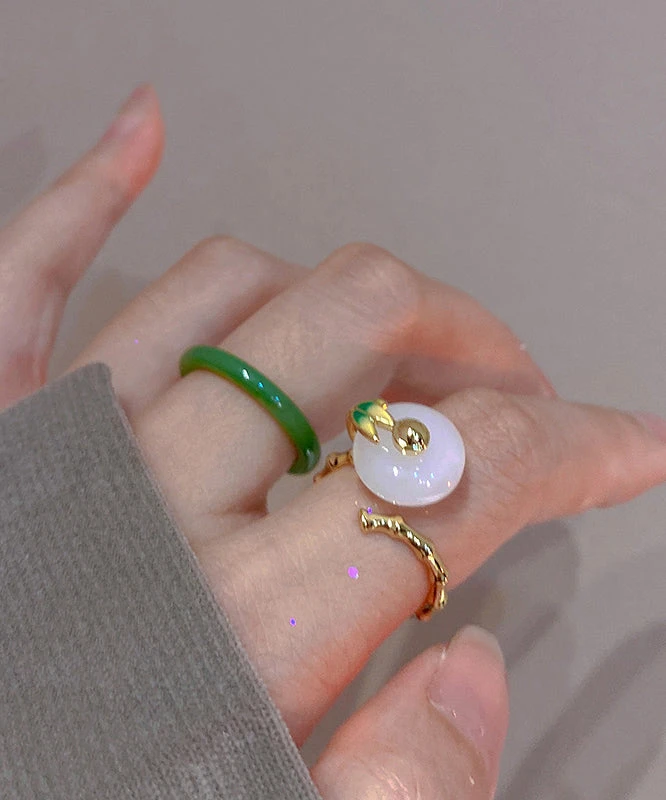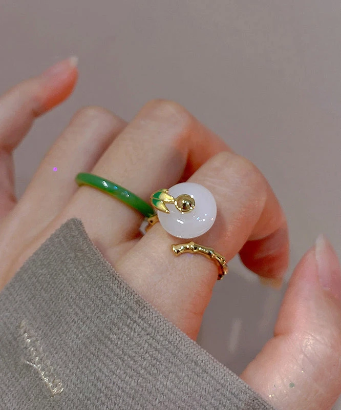 Experience the timeless elegance of nature with our luxurious Chic Green And White Jade Bamboo Joint Ping Buckle Rings Two Piece Set GH1031. Indulge in the sophistication and exclusivity of the finest jade and bamboo materials, carefully crafted into a stunning two piece set that exudes sophistication.
