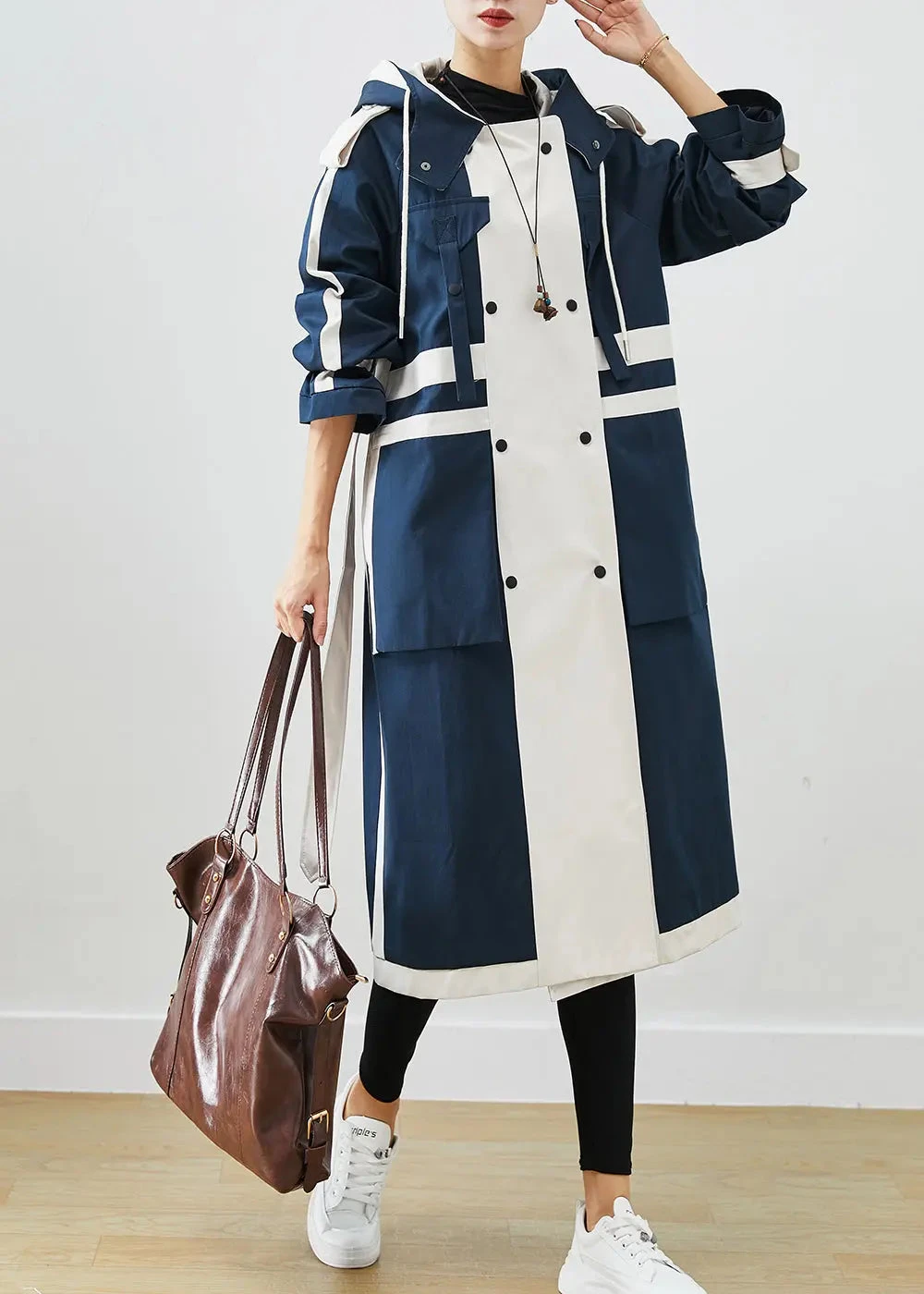 Chic Navy Oversized Patchwork Original Design Cotton Trench Coats Fall