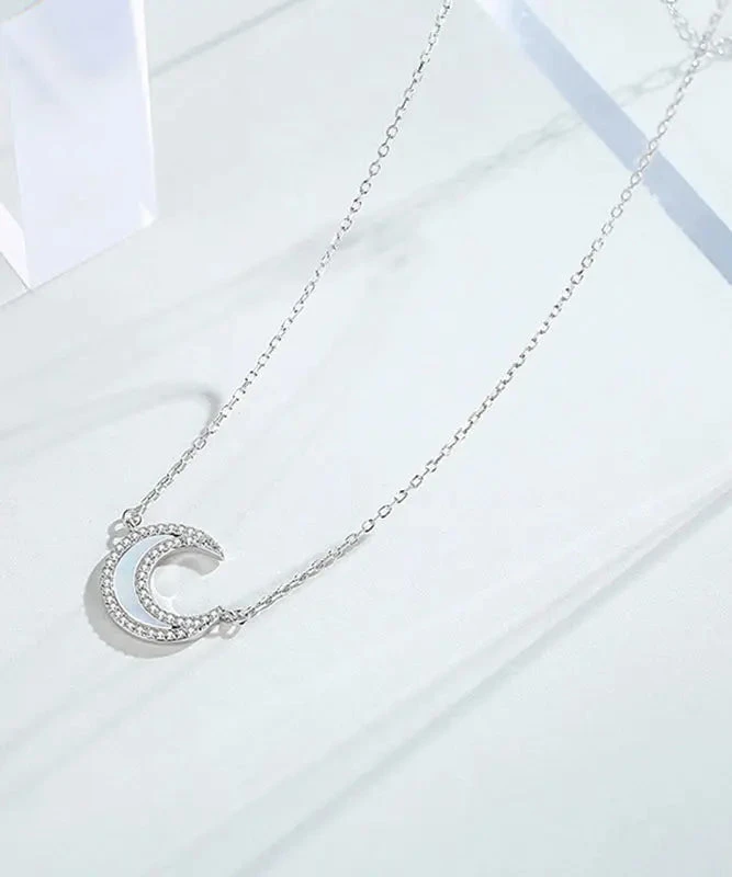Chic Silk Sterling Silver Inlaid Moon Pendant Necklace ML0296