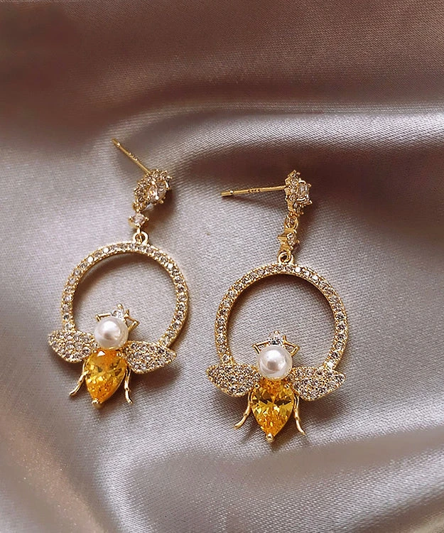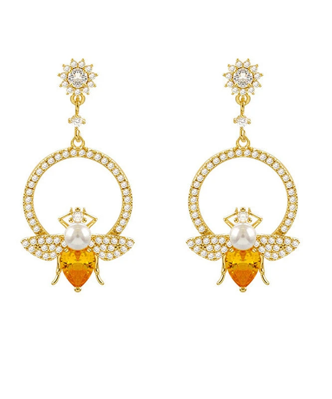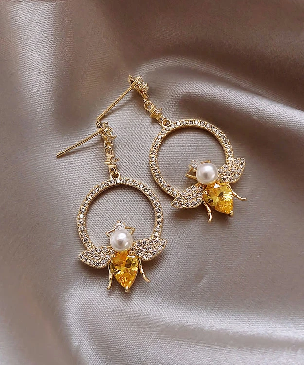 Chic Yellow Alloy Crystal Zircon Bee Hoop Earrings