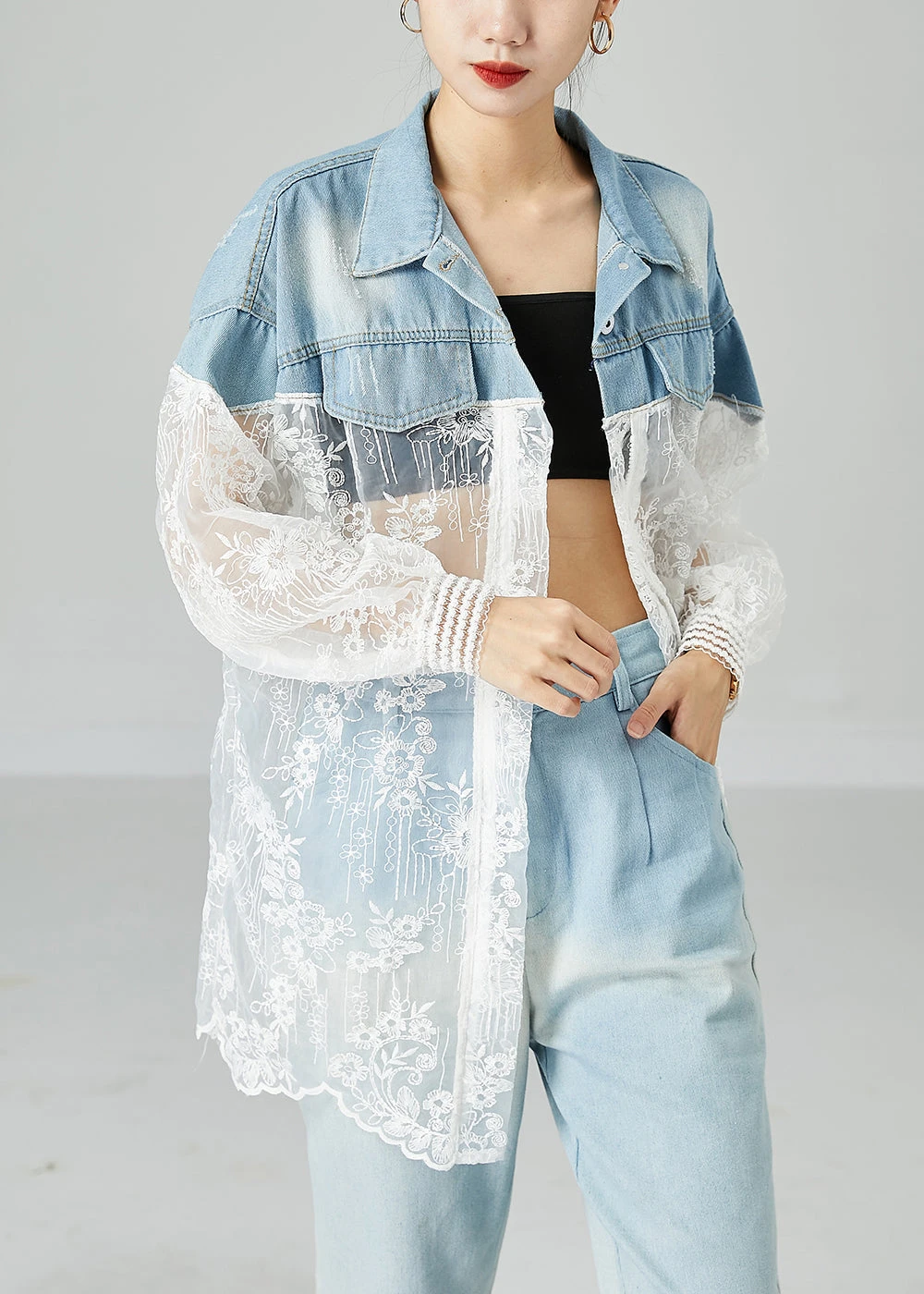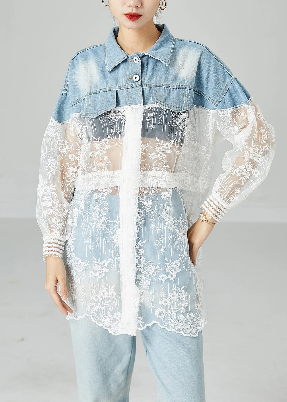 Be the first to review “Classy Colorblock Embroideried Patchwork Hollow Out Denim Coat Outwear Summer LY2429” Cancel reply