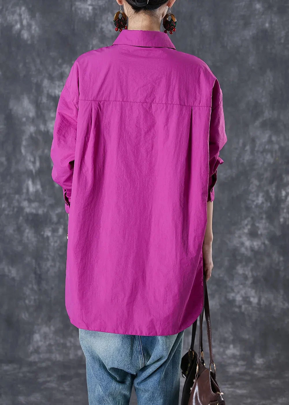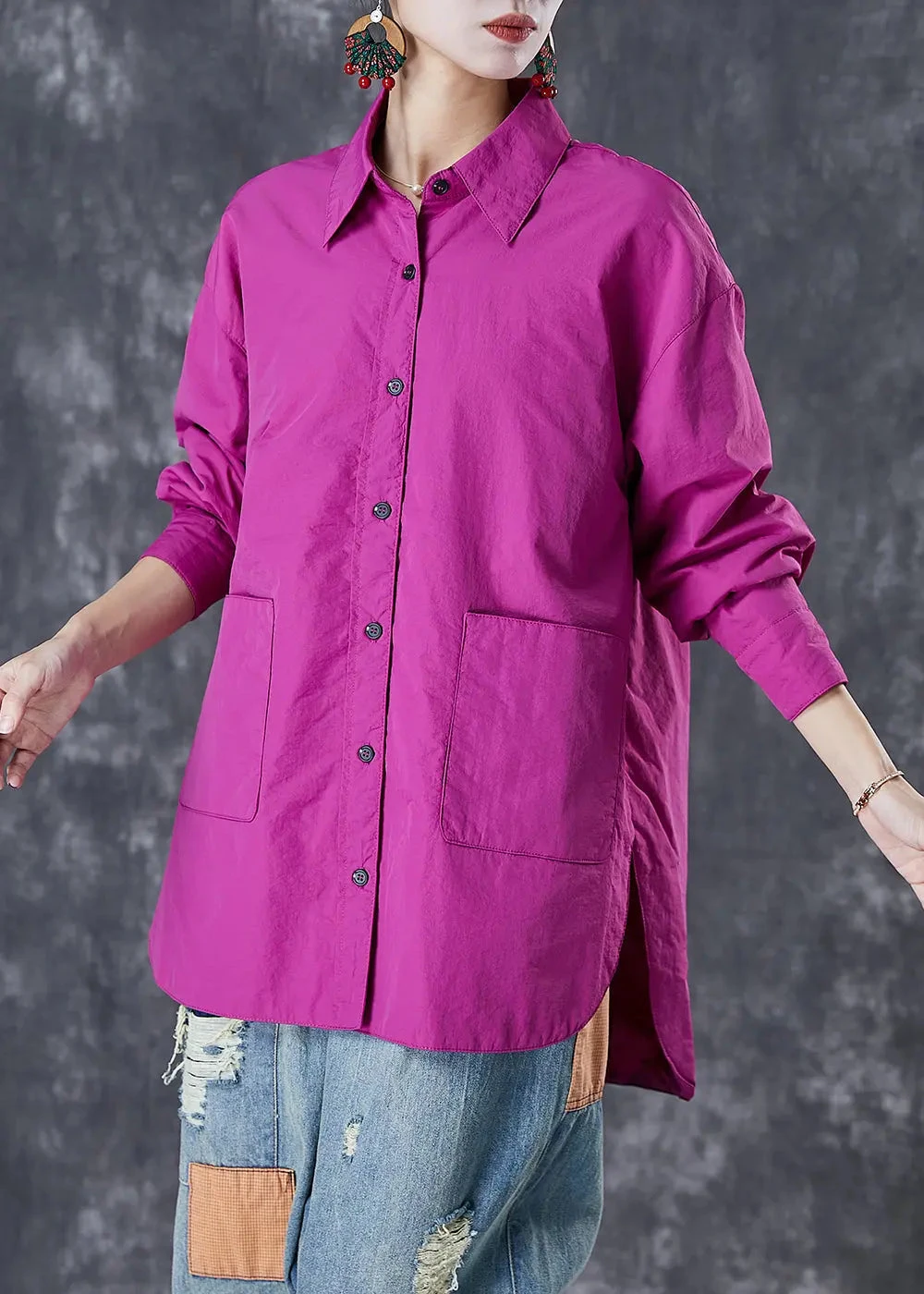 Classy Purple Oversized Pockets Cotton Blouses Fall