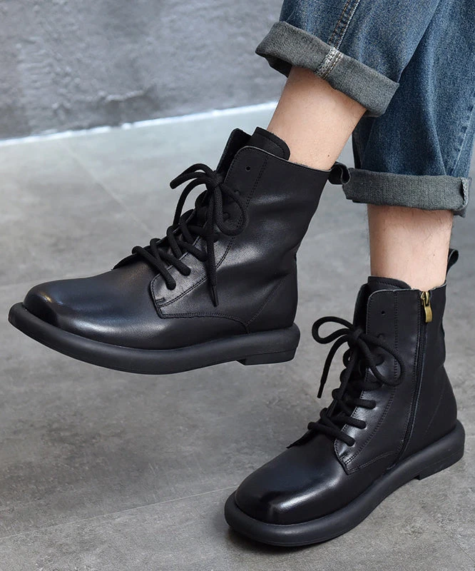 Cowhide Leather Boots Brown Casual Splicing Cross Strap