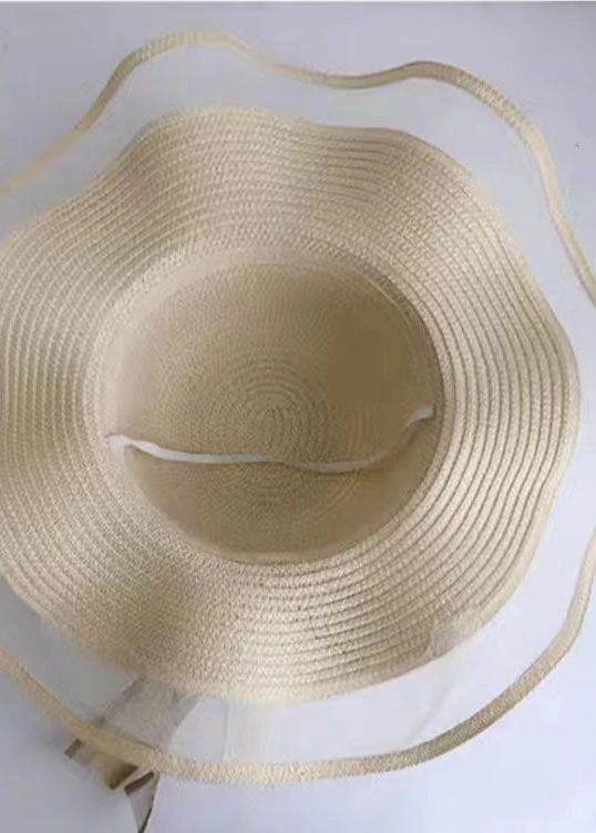 DIY Beige Bow Straw Woven Beach Holiday Floppy Sun Hat