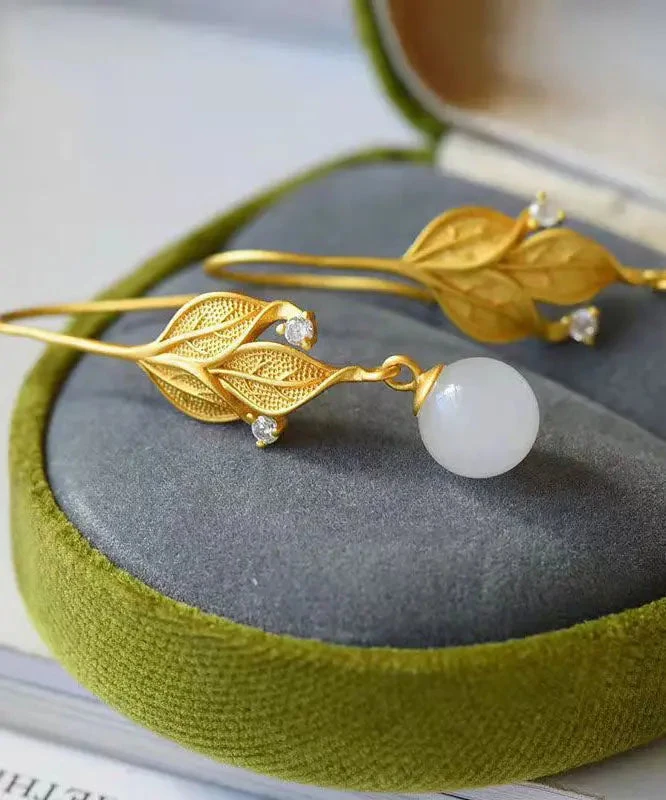 DIY Gold Sterling Silver Overgild Jade Leaf Drop Earrings
