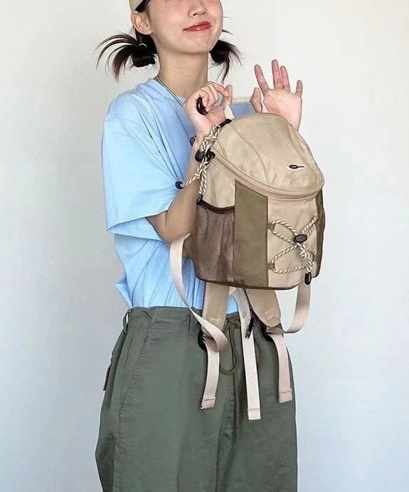 DIY Khaki Patchwork Durable Backpack Bag ML2231