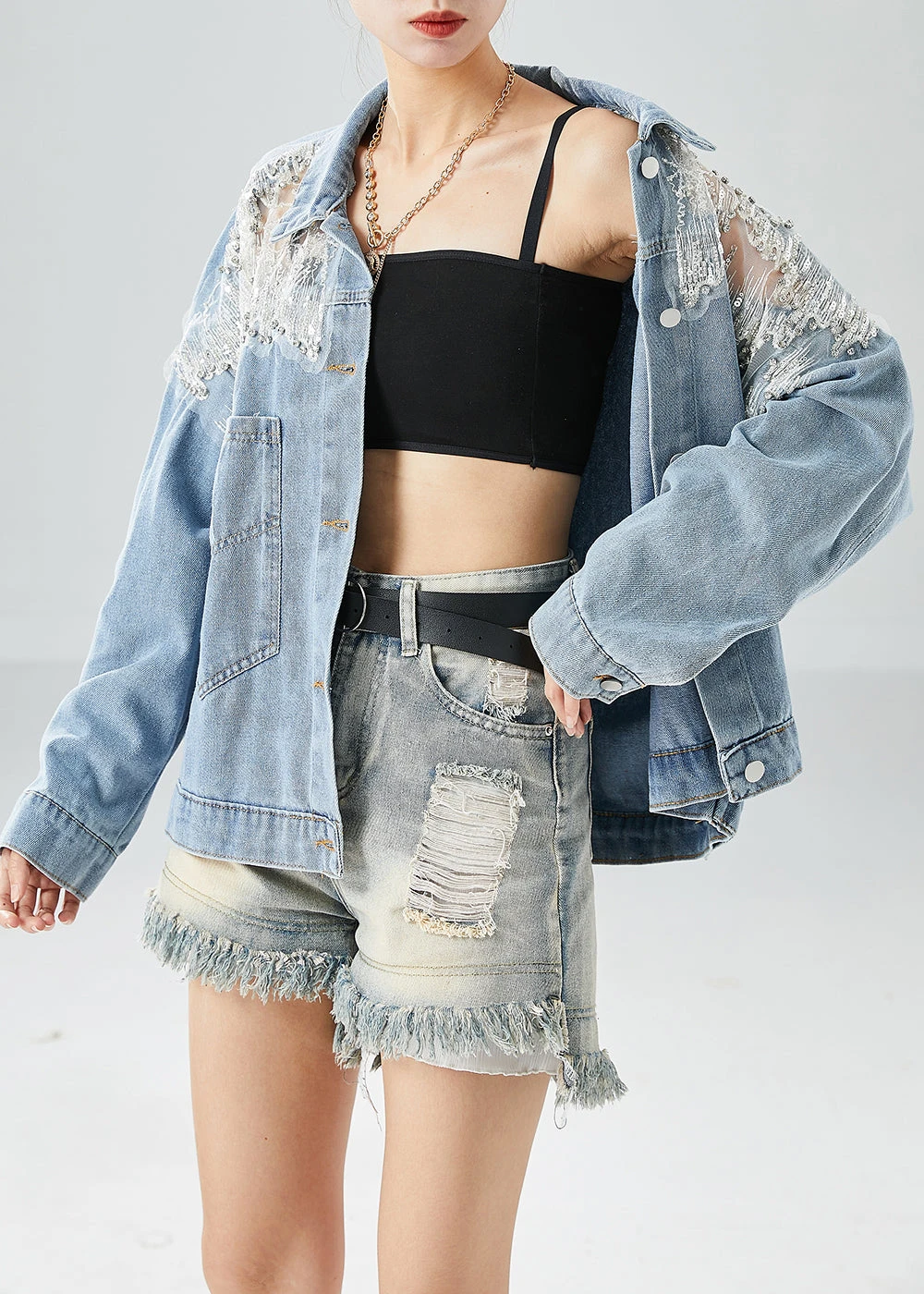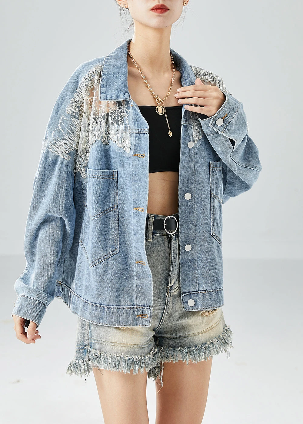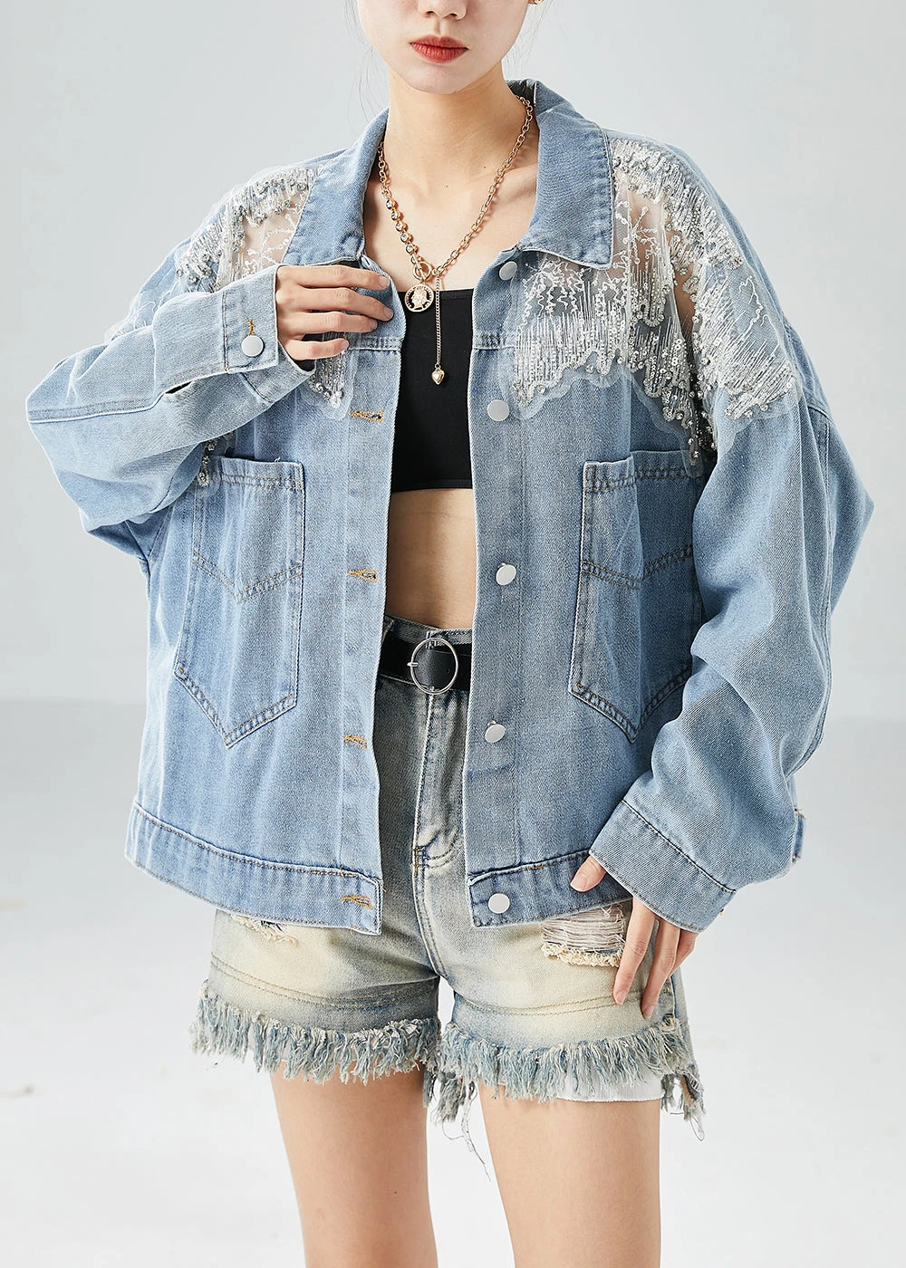 Be the first to review “Diy Light Blue Hollow Out Patchwork Zircon Denim Coat Outwear Fall LY6086” Cancel reply