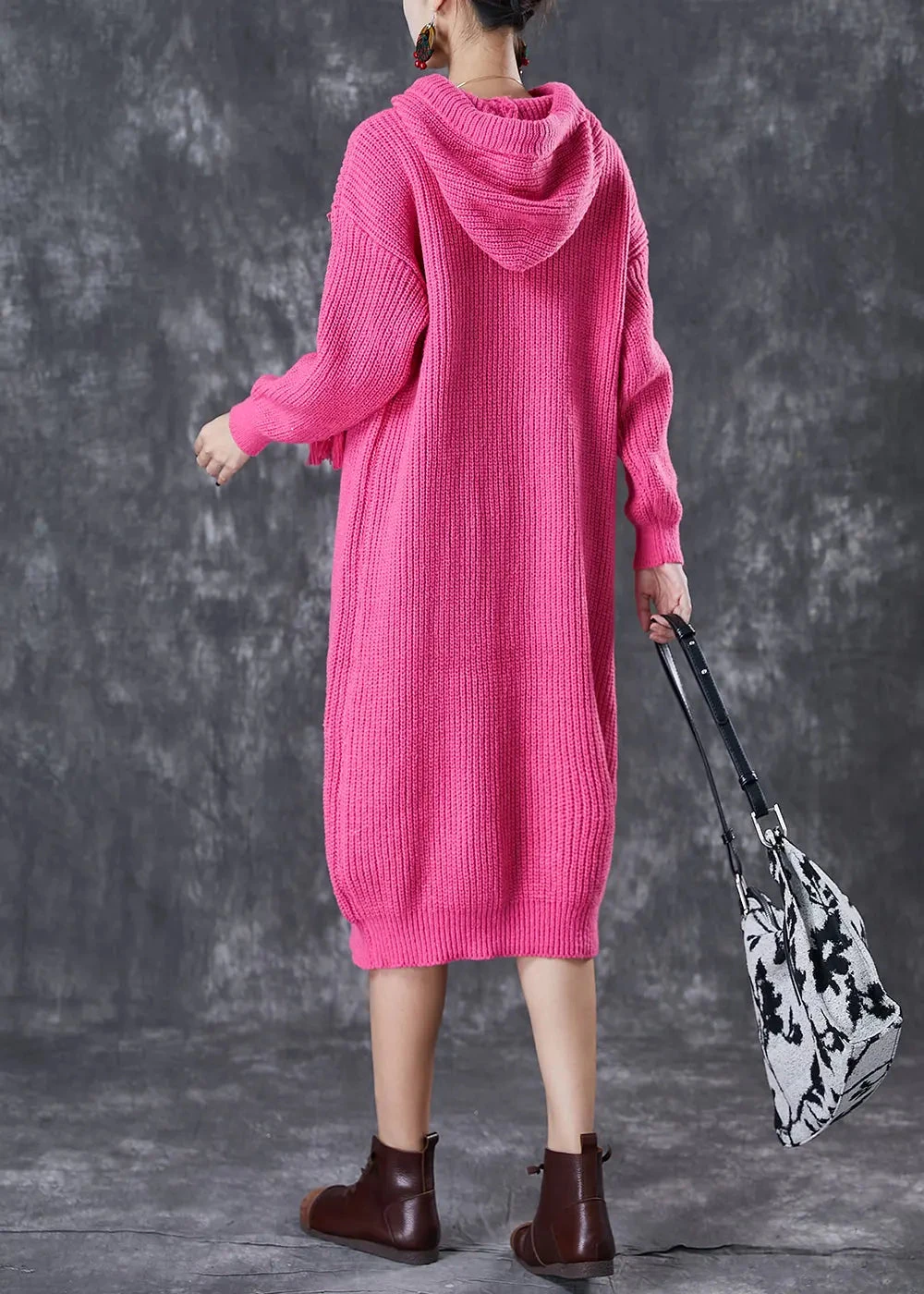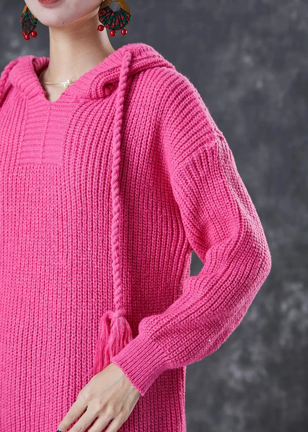 DIY Rose Hooded Drawstring Knit Pullover Sweatshirt Dress Fall