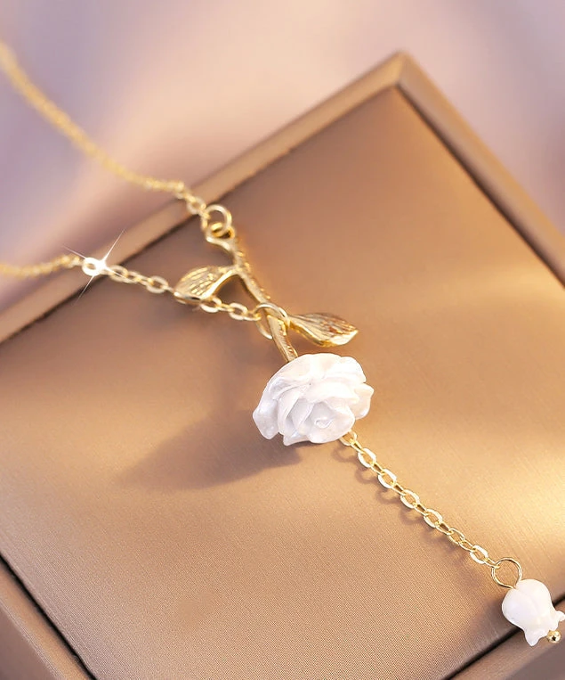 DIY White Copper Overgild Rose Floral Tassel Pendant Necklace LY1792