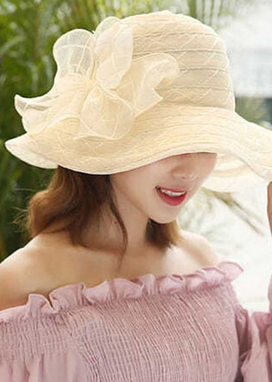 Elegant Beige Bow Patchwork Straw Woven Floppy Sun Hat