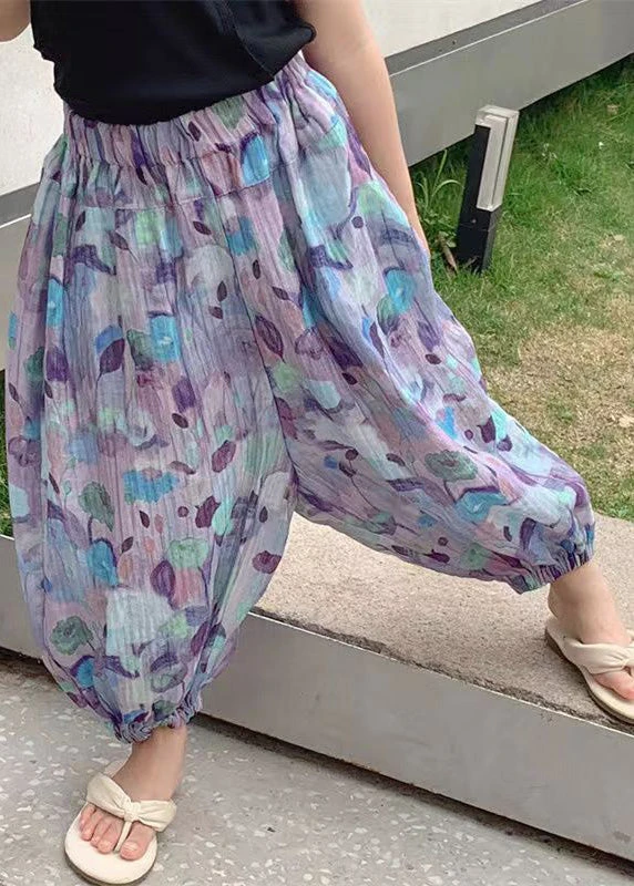 Elegant Pink Print Elastic Waist Kids Lantern Pants Summer