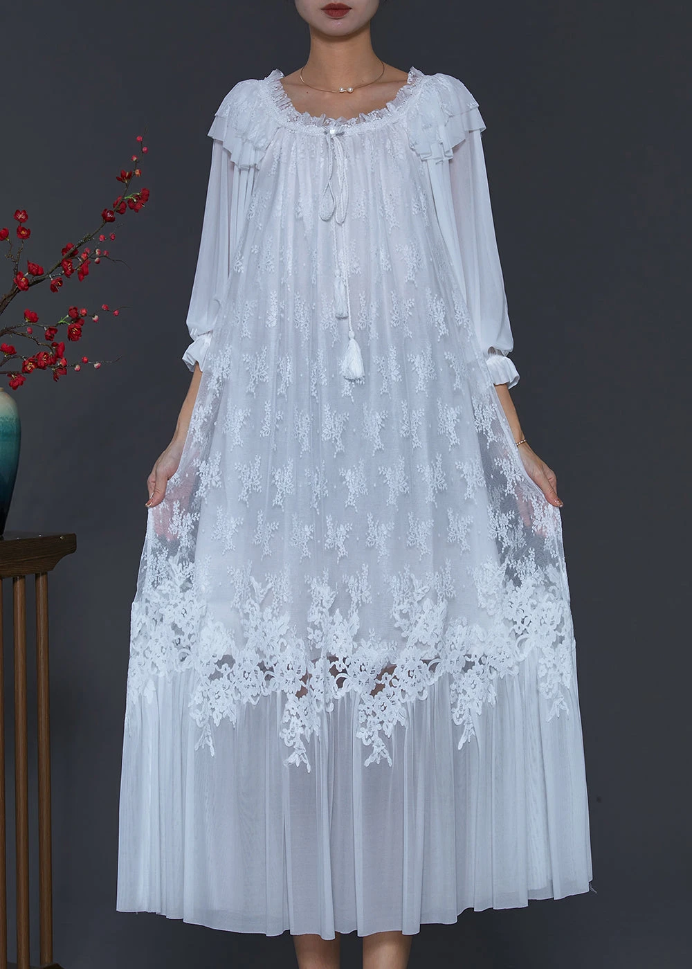 Experience the epitome of grace and sophistication with our exquisite White Embroidered Patchwork Lace Dresses for the Spring season. Luxurious lace and intricate embroidery combine to create a timeless masterpiece, fit for the elite fashion connoisseurs. Elevate your wardrobe with this exclusive piece that exudes elegance and refinement.