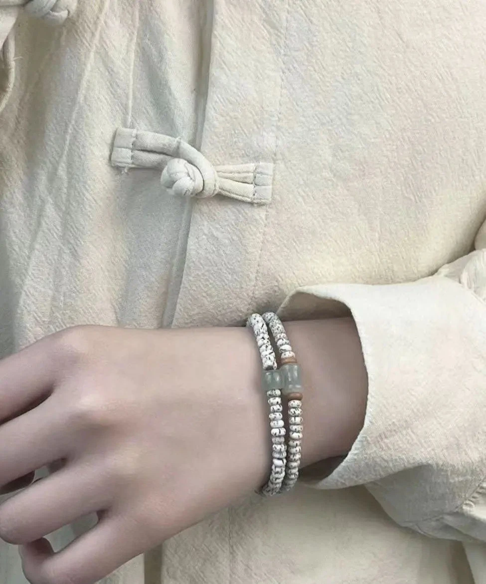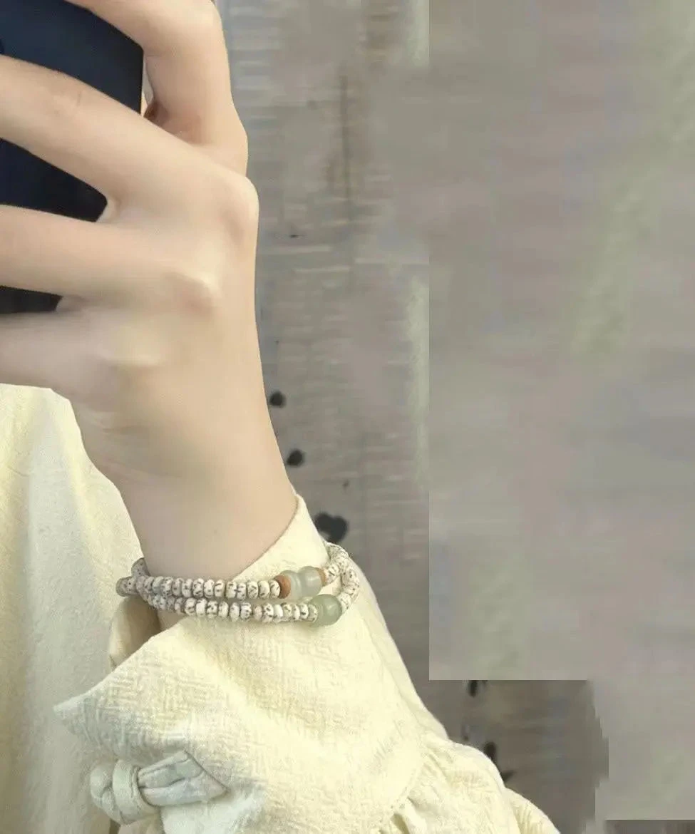 Elegant White Jade Bodhi Seed Double Circle Bracelet