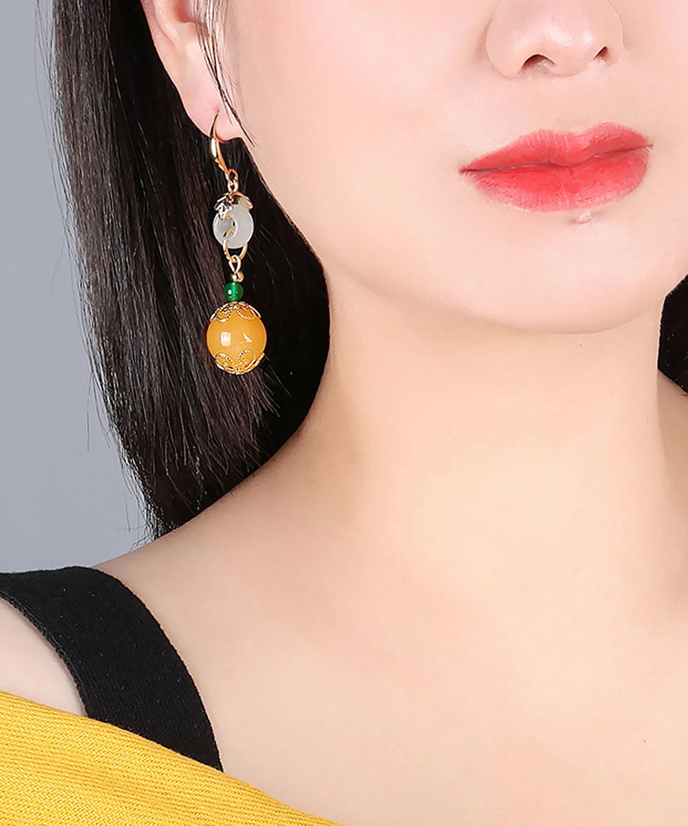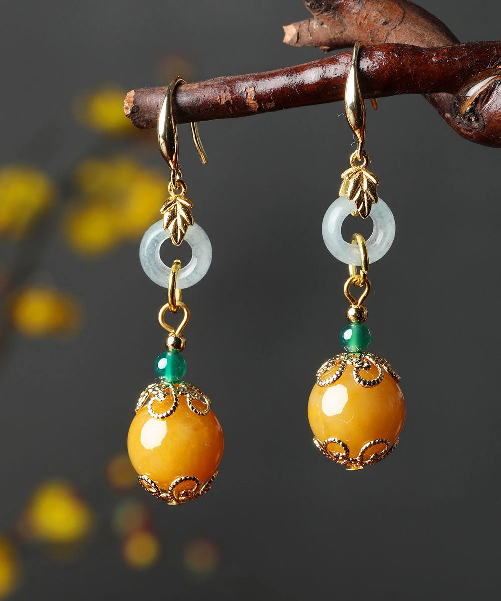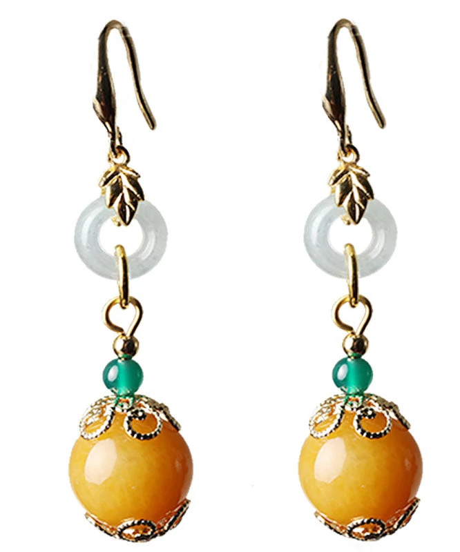 Elegant Yellow Sterling Silver Overgild Jade Drop Earrings LY9207