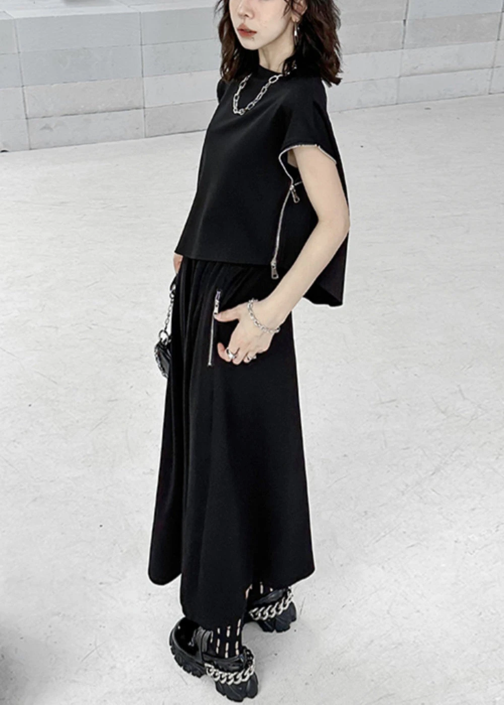 Be the first to review “Fashion Black Zip Up Patchwork Tops And Skirts Cotton Two Pieces Set Fall LY9285” Cancel reply