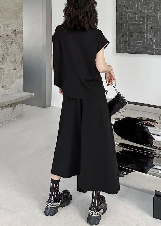 Fashion Black Zip Up Patchwork Tops And Skirts Cotton Two Pieces Set Fall