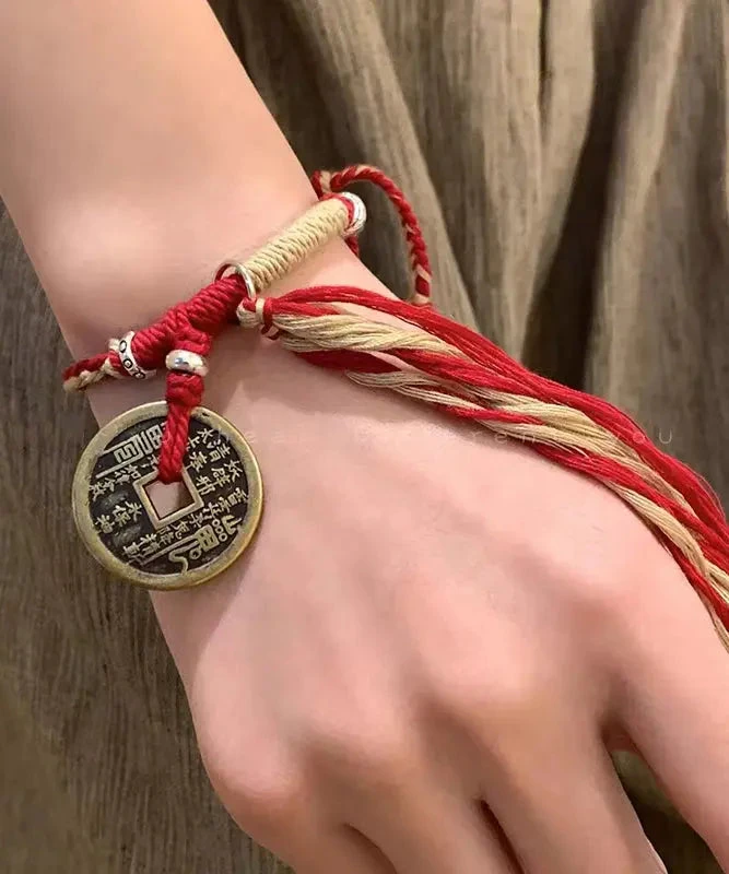 Fashion Red Hand Knitting Copper Cash Chain Bracelet