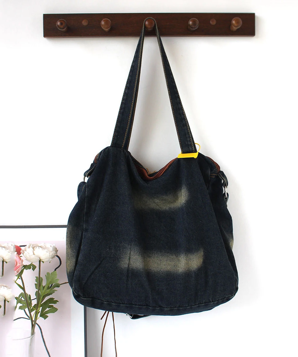 Fashion Tassel Large Capacity Denim Satchel Bag Handbag