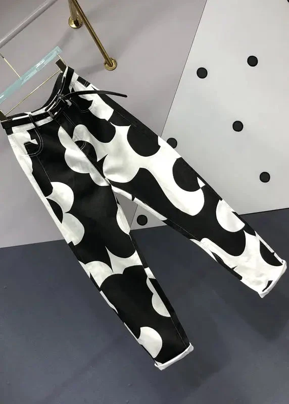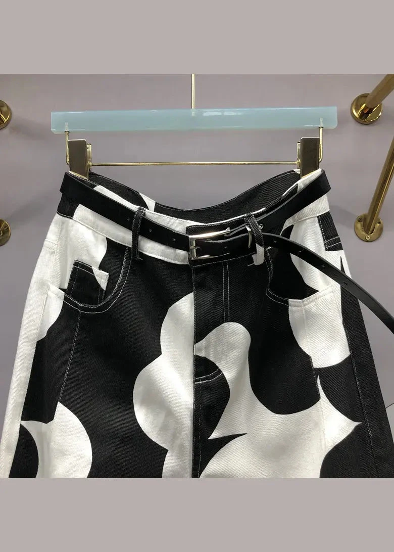 French Asymmetrical Print Pockets Patchwork Denim Pants Fall ML0784