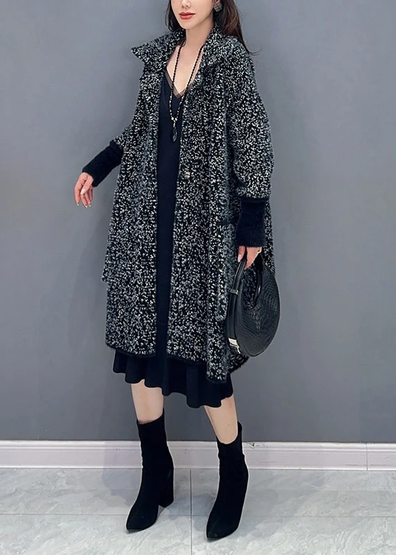 French Black Peter Pan Collar Pockets Mink Hair Knitted Coats Fall