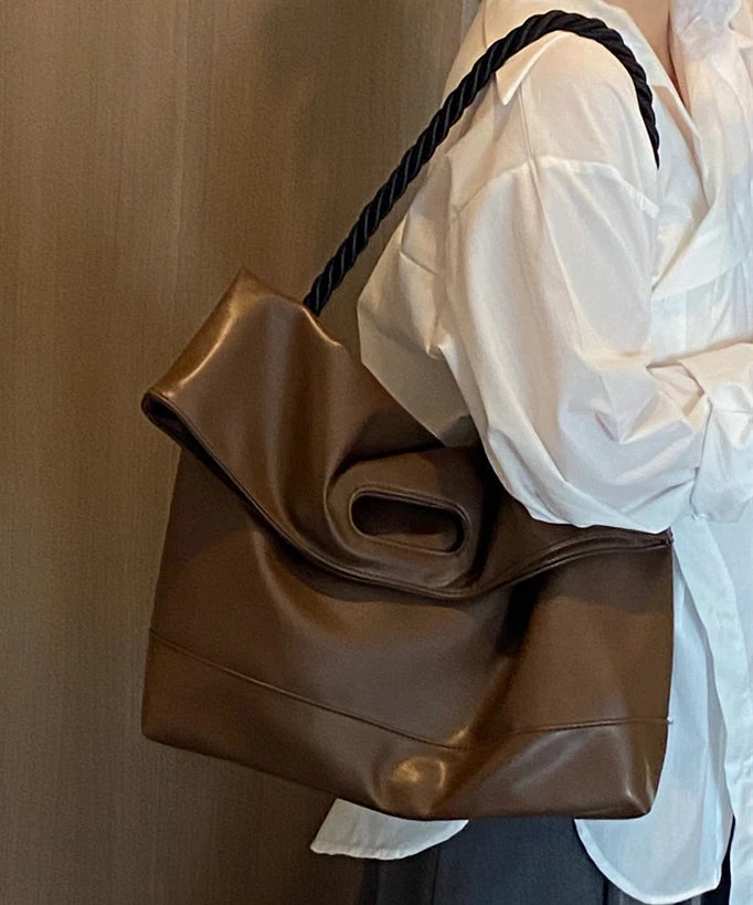 Handmade Brown Large Capacity Faux Leather Satchel Handbag
