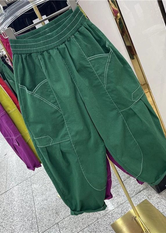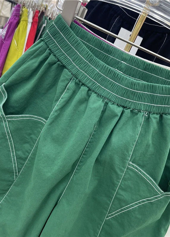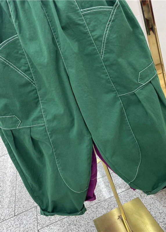 Handmade Green Pockets Patchwork Cotton Harem Pants Summer
