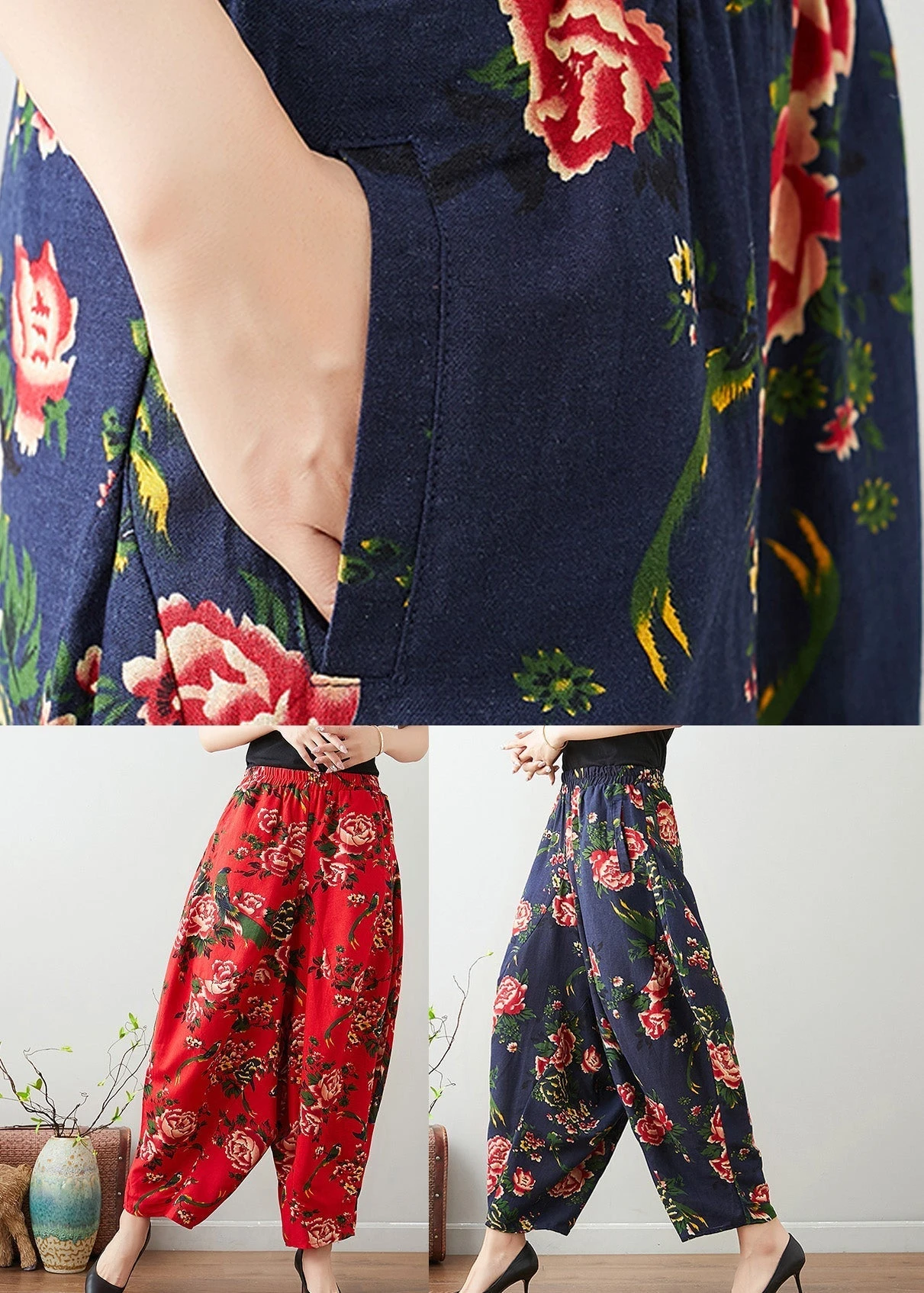Handmade Red Print Cozy Waist Wide Pants LY7546